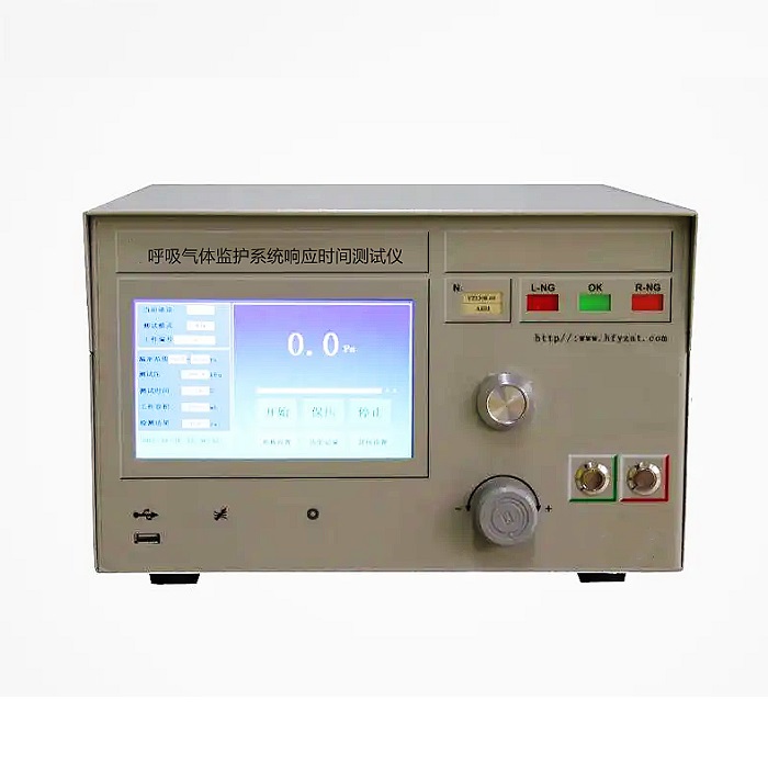 呼吸气体监护系统响应时间测试装置是为满足百度YY0601-2009《医用电气设备 呼吸气体监护仪的基本安全和主要性能专用要求》中51.102系统总响应时间特别定制的测试工装,包括两个大量程流量计及两个电磁阀和与之联动控制的控制器/计时器。