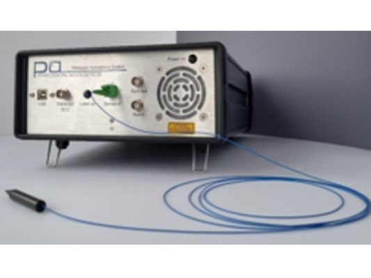 FOHS光纤水听器是一款高带宽、高灵敏度的光纤水听器系统,其工作频率覆盖了0.25MHz到40MHz。该系统由光纤探头、光源、光电检测器、以及数据采集模块组成,其中光纤探头的末端进行了镀膜处理,以增强光反射的效果。该系统采用了法布里-铂罗涉仪的原理:测量时,激光由光源产生并射入光纤探头,入射光在光纤末端腔体内的镀膜层产生反射;加载在光纤探头上的声波导致光纤末端的腔体产生形变,进而使反射光产生相位变化。通过光电检测器对从光纤回来的反射光进行解调,得到交流和直流两种信号。交流信号直接连接到示波器,通过示波器采集与显示声波波形;直流信号通过数据采集模块连接到电脑,用于温度数据的采集与显示。