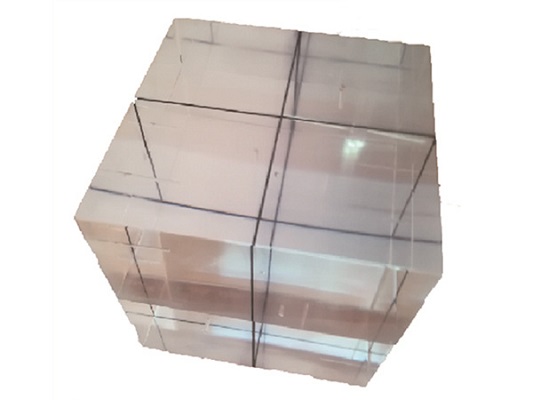 6.要求尺寸精确,其各面的中心刻有十字标识,立方体内中心点放置一直径为2.00mm高密度乌珠球,周边按标图尺寸放置钢球