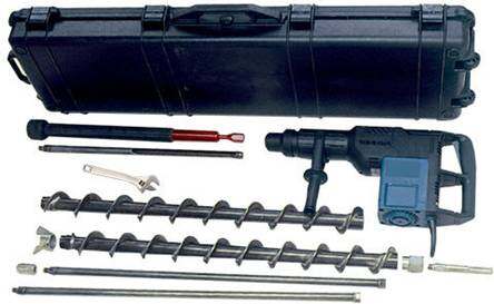 Bosch电动钻1台、5/8英寸螺纹公头转SDS Max钻头适配器1个、常规滑动锤1个、空心螺纹钻体1根、空心螺纹延长钻体1根、0.9米钻杆2根、尖头1个、扳手1把、尼龙刷1把、豪华便携箱1个。 |