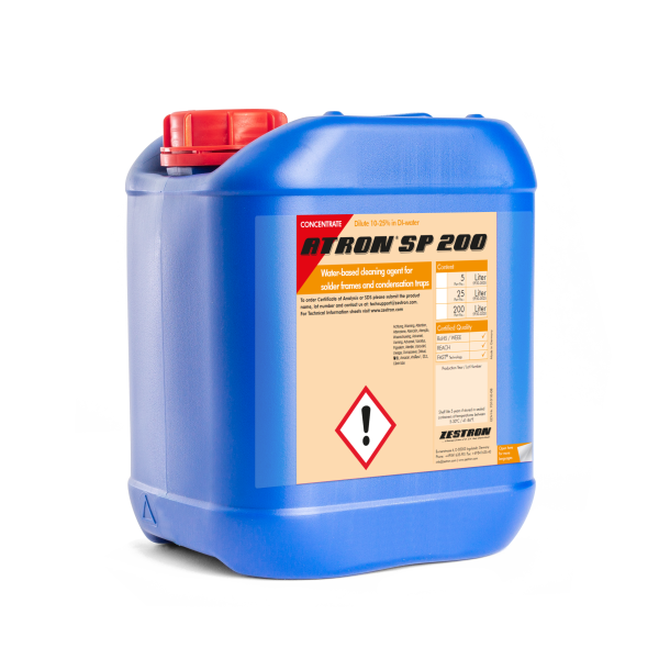 ATRON® SP 200是一款水基碱性表面活性剂型清洗液,特别设计用于清洗焊接夹具和冷凝管上烘焙过的助焊剂。ATRON® SP 200对于清除网板上的焊锡膏也非常有效。可应用于喷淋清洗设备、超声波清洗设备或者空气辅助清洗设备中。